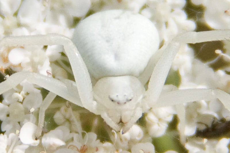 At this point, we all should've been scurrying off to the Collected Frost to find out how many other manholes lay under the hollyhocks. I’ve since found many, and I'll write about them all one day. Until recently, I thought that the worst of them was the final line of ‘Design’, whose real intentions Randall Jarrell was first to identify. Nature, in the form of random genetic mutation, has led to a little horror on a white flower-head, where an invisibly camouflaged white spider has plucked a moth from the air. ‘What had that flower to do with being white, / The wayside blue and innocent heal-all? / What brought the kindred spider to that height, / Then steered the white moth thither in the night? / What but design of darkness to appall?’ Well, indeed. If you haveto make the argument from design, you’d also have to conclude we have a pretty evil designer round here. And then Frost shrugs. ‘If design govern in a thing so small.’ But when you see what he’s really saying here, you might start to wish sonnets were only 13 lines long.